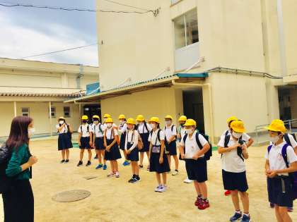 今日は、5年3組の児童は、大阪ガスのハグミュージアムでエコクッキングの体験学習をします。密を避けて、校外学習をしています。