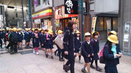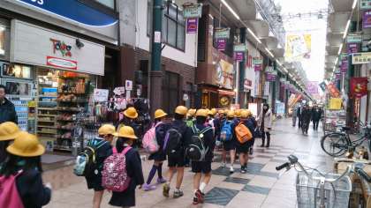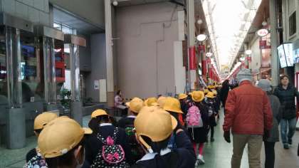 天神橋筋商店街の見学をしました。平日の昼間であるにも関わらず、とてもにぎわっており、活気のある商店街でした。