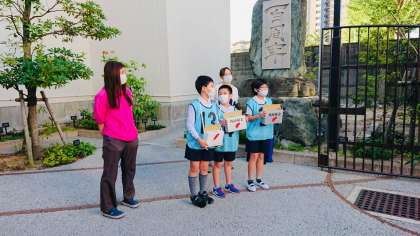 今週は、 代表委員会の児童が毎朝「赤い羽根共同募金」の活動をします。今日の活動の様子です。