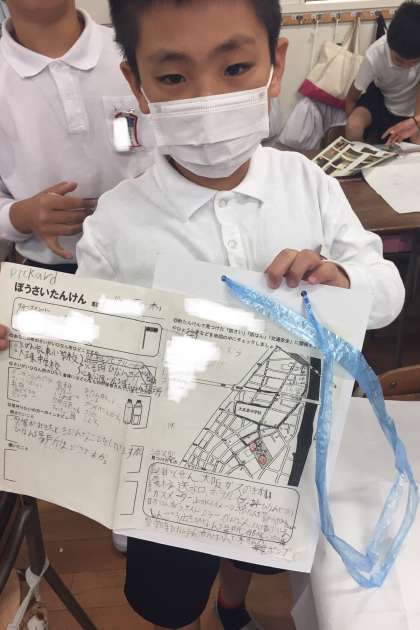 4年生が、三軒家東地域 防災マップづくりをしています。