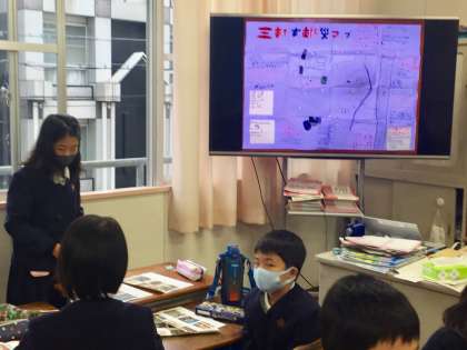 4年生が、三軒家東地域 防災マップづくりをしています。昨年度の活動を参考にしています。