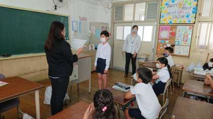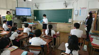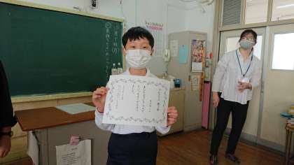 今日は、日本語教室のプレクラスの終了式を行いました。日本語を上手に話すことができるようになった児童に、同じクラスの友達が賞賛の拍手をしていました。