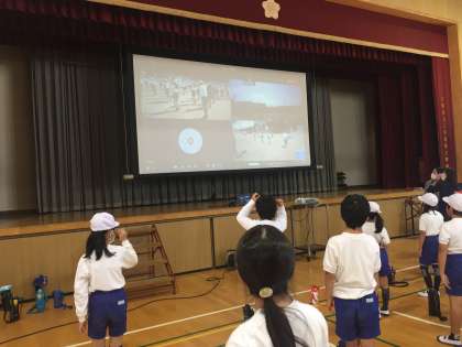 コロナウィルス感染症予防のため、Teamsを活用して、運動会の全体練習をしました。