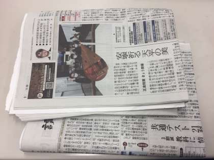 ○新聞紙(朝刊2〜3日分)を重ねて、ビニル袋をかぶせ、空気を抜いてガムテープなどでとめる。