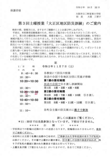 第3回 土曜授業「大正区地区 防災訓練」のご案内 一部訂正について