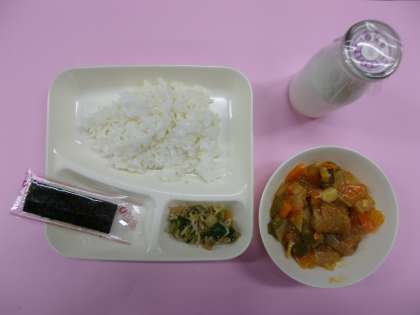 今日の献立は「酢豚、中華あえ、焼きのり」でした。