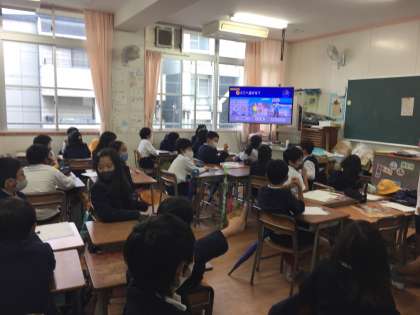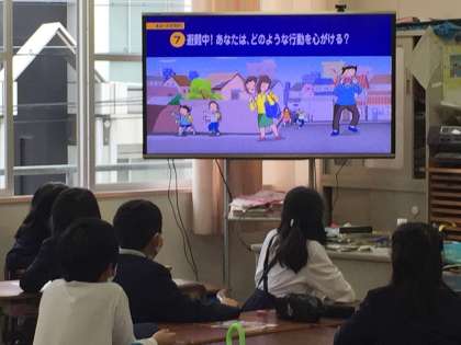 大阪市立総合生涯学習センターからお借りしたDVDを見て、「避難時の行動」について学習をしています。