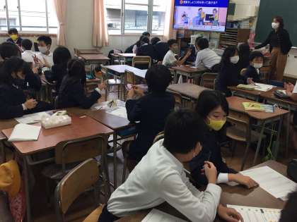 「OSAKA防災タイムアタック(神戸学院大学)」のDVDを活用して、「避難時の行動」について学習をしました。