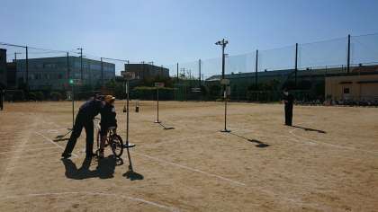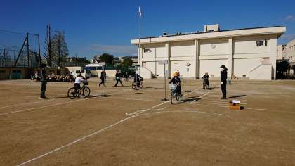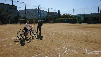 3時間目は、3・4年生が、正しい自転車の乗り方について体験しました。