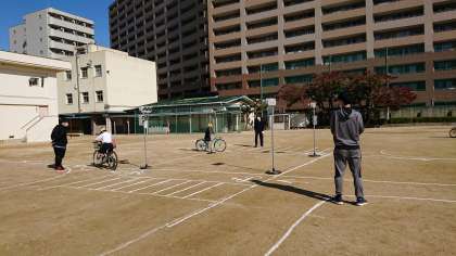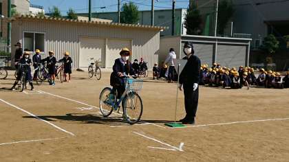 3時間目は、3・4年生が、正しい自転車の乗り方について体験しました。