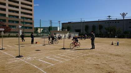 3時間目は、3・4年生が、正しい自転車の乗り方について体験しました。