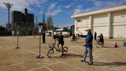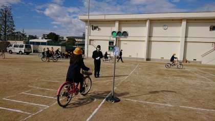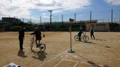 4時間目は、5・6年生が、正しい自転車の乗り方について体験しました。
