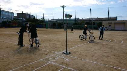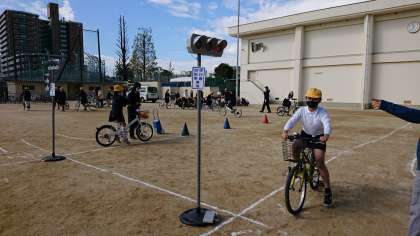 4時間目は、5・6年生が、正しい自転車の乗り方について体験しました。
