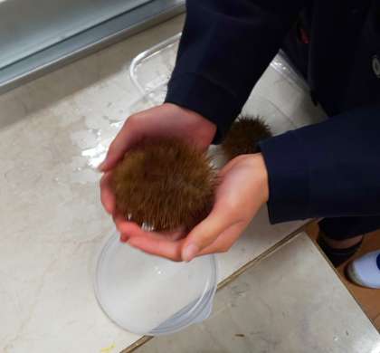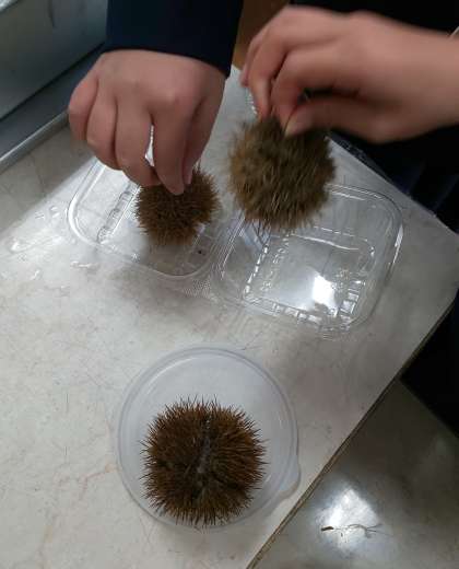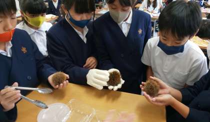先週は、4年生に本物のいがぐりを見せに行きました。