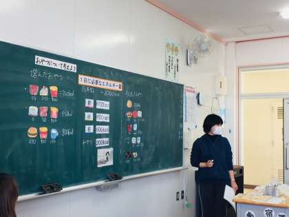 栄養指導の様子です。おやつの食べ方について、学びました。