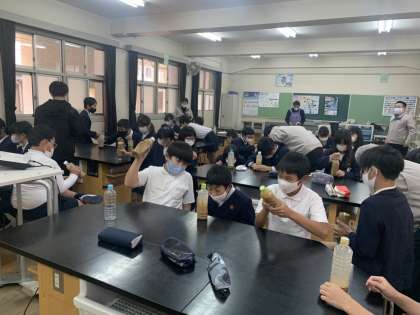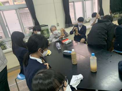 6年生は、2時間理科の特別授業に参加しました。80年の歴史ある会社(株)竹中土木の方を迎え、大地のつくりと変化の単元を学習しました。