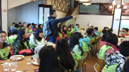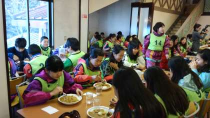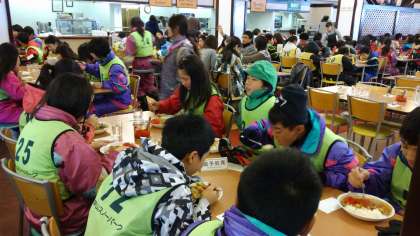 昼ごはんは大盛りカレーライスでした。みんなペロリと平らげて、昼からの練習を楽しみに、休憩しています。