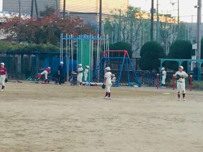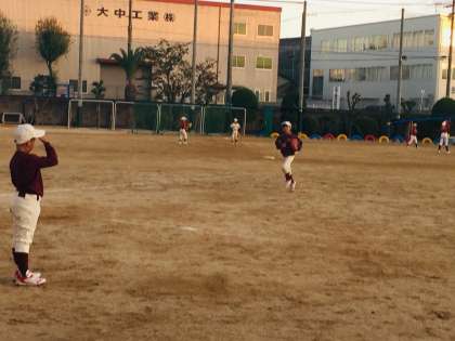 三東ベアーズの子どもたちが、今日も広い校庭で練習をしていました。
