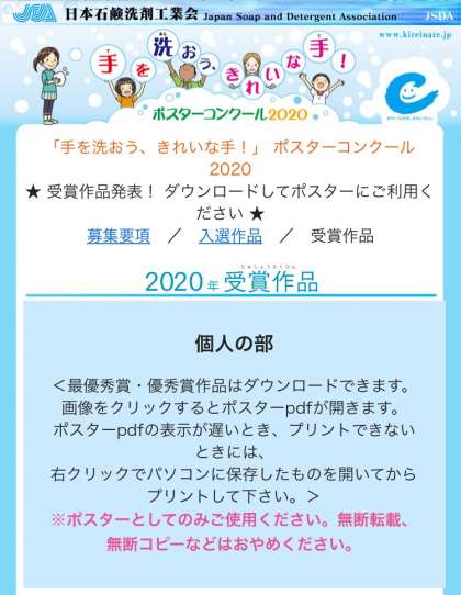 「手を洗おう、きれいな手! ポスターコンクール2020」で学校奨励賞をいただきました。