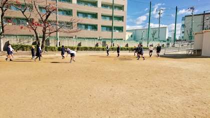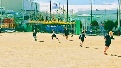 運動場で、元気に遊んでいました。