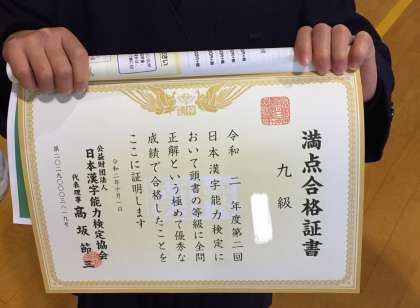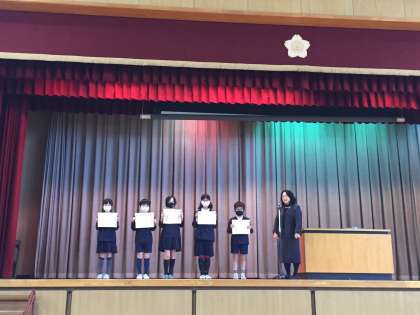昨年度、学級休業などで漢字検定を受験できず、今年受験をし、満点合格だった児童の表彰をしました。