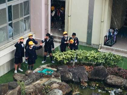 下校の時に、雪がふっていました。こどもたちは、大変よろこんでいました。
