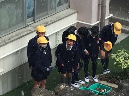 下校の時に、雪がふっていました。こどもたちは、大変よろこんでいました。のびのび広場の池に、氷がはっていました。