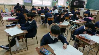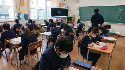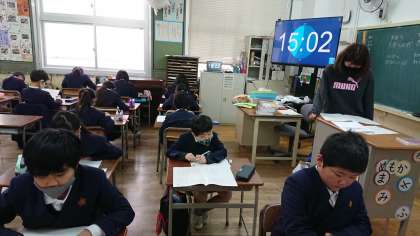今日は、3〜6年生が、国語、社会の経年調査に取り組みました。