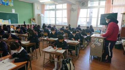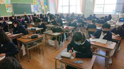 今日は、3〜4年生が、算数、理科、5〜6年生が算数、理科に加えて英語の経年調査に取り組みます。