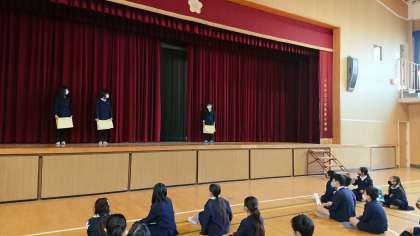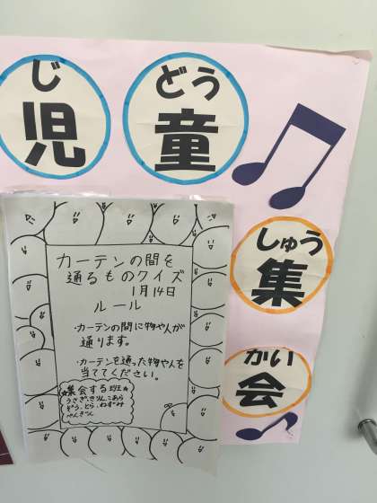 1月14日(木)児童集会【カーテンの間を通るものクイズ】