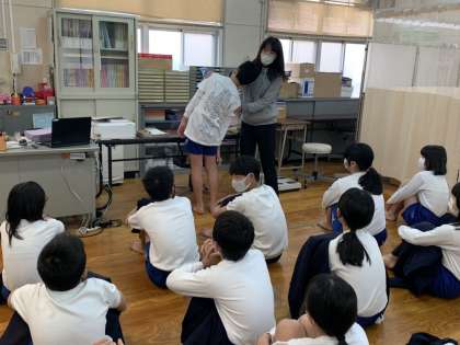 6年生は小学校生活最後の発育測定でした。保健の先生からは、背骨や臓器の様子がわかるTシャツを使って、正しい姿勢を保つ必要性についてお話してもらいました。これからいい姿勢を意識して過ごしてほしいと思います。