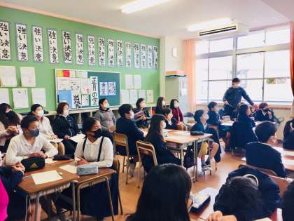 今日は、5年生で、大阪市小学校教育研究会の大正支部 英語部の授業研究会を行いました。Teamsも活用しながら行いました。研究授業の様子です。