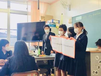グループごとに1人の先生にインタビューをして、先生のできることやできないことをクイズにして発表しました。