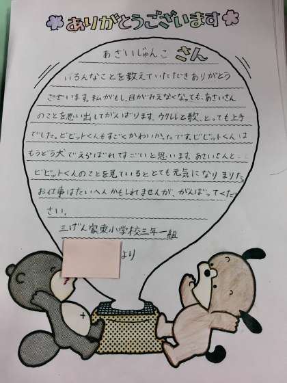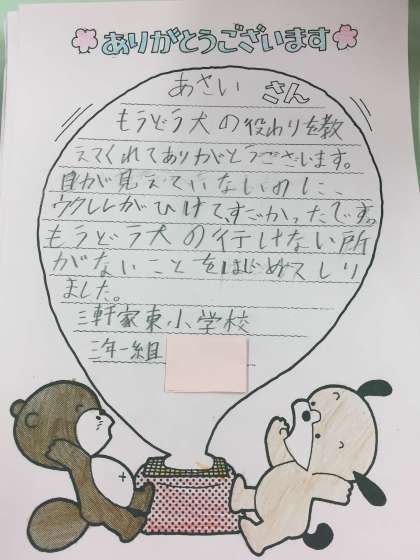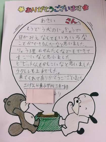 特別授業をしていただきました。3年生の児童が浅井さんへ