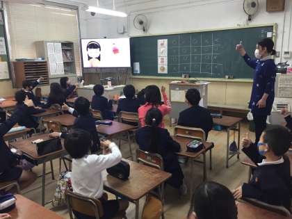 今日は、学力向上支援サポーター(学びサポーター)の まみ先生に来ていただき、英語の学習をしました。