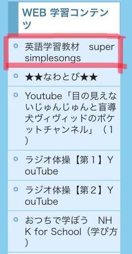 学校ホームページ後ほど右らんリンクの【WEB学習コンテンツ】のページをご活用ください。英語学習教材です。→
