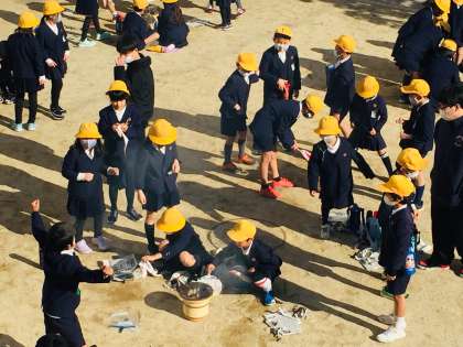 3年生が、もち焼き体験をしています。