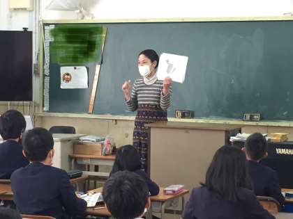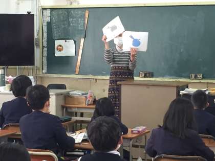 英語学習の様子です。学びサポーターの まみ先生から教えていただきました。