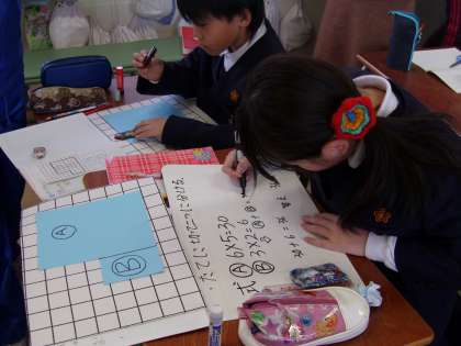 いろいろと工夫して考えました。近くのお友達に、自分の考え方を説明しました。