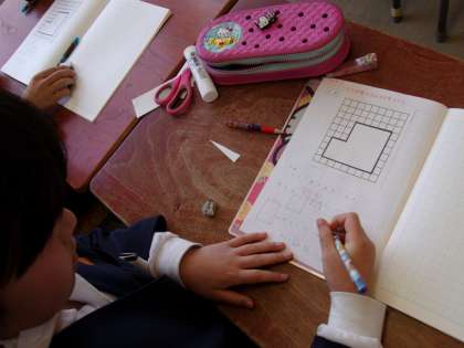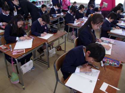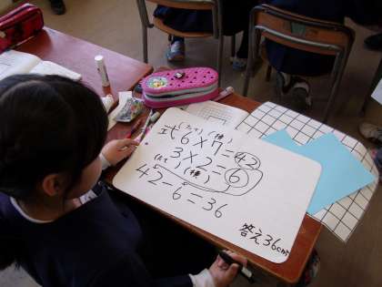 2月16日(月)に、4年2組で、授業研究会を実施しました。「面積 広さを表そう」という単元で、「ふくざつな形をした図形の面積の求め方を考えよう」ということで、見通しをもとに、子どもたちは一生懸命考えていました。