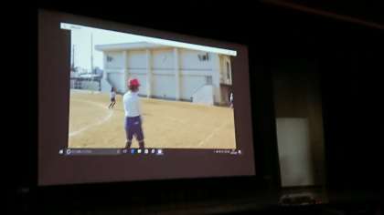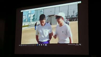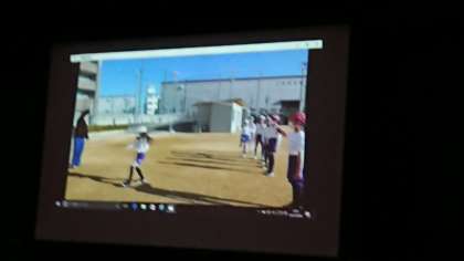 屋外スポーツクラブのビデオ発表の様子です。