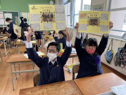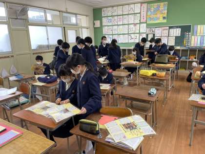 たてわり班からのプレゼントを教室に帰って一人一人受け取りました。6年せいは、嬉しそうにメッセージを読んでいます。