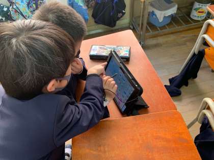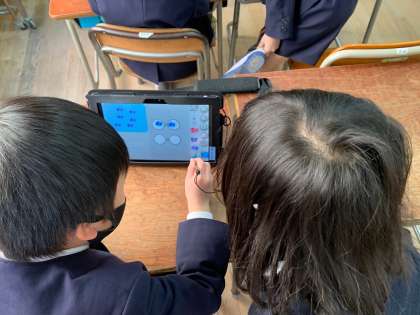 ビスケットを使って、プログラミングでお魚を動かしました。