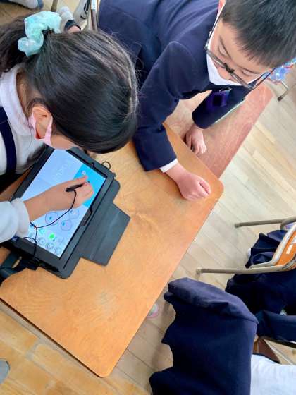 ビスケットを使って、プログラミングでお魚を動かしました。