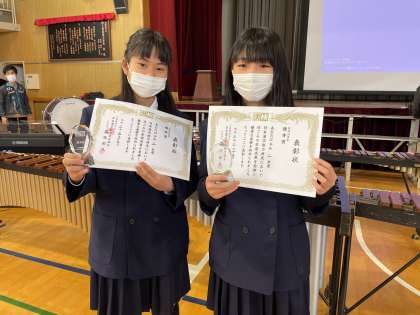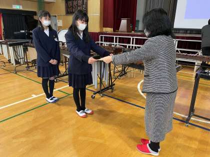 日本漢字能力検定で優勝な成績の6年児童の表彰をしました。