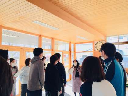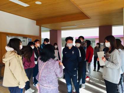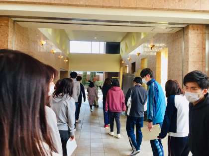 津波を想定した避難について、教員研修をしました。 学校に隣接するマンションの4階以上への避難経路を確認しました。