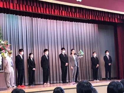 着任式の様子です。一人ずつ自己紹介をしていただきました。