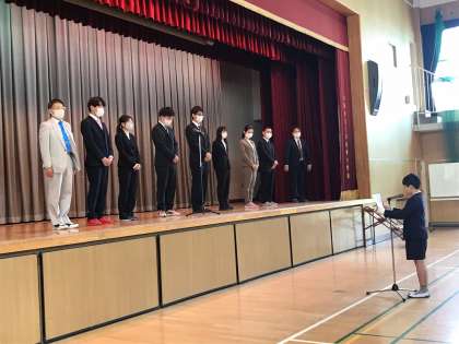 6年生の代表児童が、歓迎のあいさつをしました。