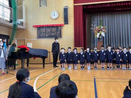 2〜6年生から歓迎の言葉をもらいます。