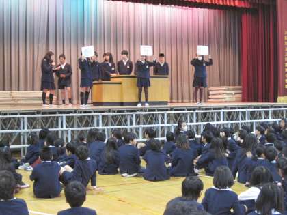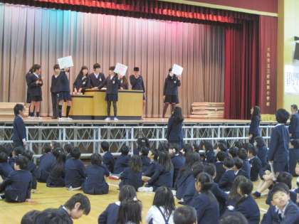 今日はの集会は「キーワードを解け!!」というクイズ形式のゲームでした。